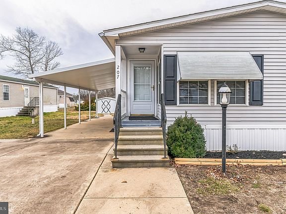 Well-maintained home in desirable Berryman's Branch manufactured home community in East Vineland. Spacious eat-in kitchen with oak cabinetry. The kitchen opens up to a large living room/dining room, three spacious bedrooms, and a separate laundry room. Other great features include a covered porch, carport, concrete driveway, natural gas heat and hot water, public water and sewer, and shed. This sale is subject to park approval. This home is easily accessible to Routes 55 and 49, and all shore points.