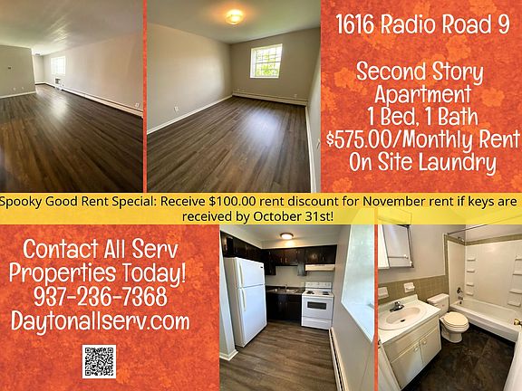 This 552 square foot apartment home has 1 bedrooms and 1.0 bathrooms. This home is located at 1616 Radio Rd #9, Dayton, OH 45403.