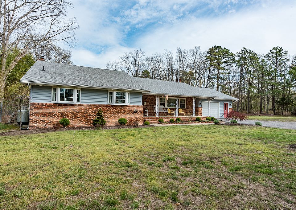 If you want a Gorgeous Ranch style home that has been updated, and has a very Open Floor-plan that is perfect for Entertaining and Large Gatherings - This Is The Home for You! Formerly having 4 bedrooms, 2 were combined to create an expansive 2nd bedroom suite. In all, this home has 3 sizable bedrooms with their own private full bathrooms, 2 half baths for guests, a BIG sunny & bright Family & Game room w. Beamed Cathedral ceilings, brick fireplace, big windows & French Door to the rear deck & back-yard. The Gourmet kitchen has Granite countertops, quality cabinetry, s. steel appliances, ceramic tiled floor & backsplash, work island, large breakfast peninsula, French Doors to the deck and is open to the living and dining rooms. The living room has a brick walled wood burning stove, and every room is graced with gleaming hardwood floors throughout. The main floor laundry room is large, and the 3rd bedroom suite is on the upper level with a large storage closet and storage attic. Oher notable features include a walk-in closet in the Master Bedroom, a long driveway, an oversized 1.5 car garage, newer 50 year metal roof, newer septic system and well equipment, partial utility/storage basement w. Bilco door access, large pergola covered deck and a deep fenced in yard with 2 storage sheds - all surrounded on by Woods providing lots of privacy. This sunny and airy retreat could be a great home for a multi-generational family, or those who just want their own private bathrooms. Either way, this is a perfect home and property for enjoying all that Tabernacle has to offer at a Reasonable price! Square footage is approximate based on seller's exterior measurements of the home.