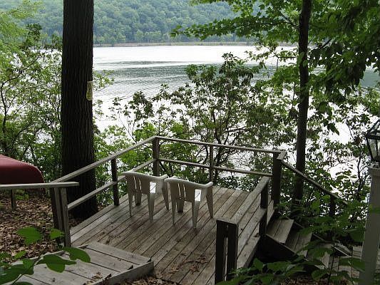 Escape from your daily pressures by parking your car in a large private lot and taking your boat for a 5 minute ride to this semi-secluded three season cottage on the eastern shore of Whaley Lake Island in southeastern Dutchess County. Unwind and recharge in this peaceful wooded environment by using the facilities for boating, swimming, fishing, or just relaxing on the large open deck or in the large screened porch.This one-level cottage has an open floor plan, is completely furnished, and is in move-in condition. The spacious great room has a cathedral ceiling and a cozy wood stove for taking the chill off in the early spring and late fall. The kitchen and bathroom have been updated and have updated appliances. The terrific large screened porch overlooks the undeveloped eastern shore of Whaley Lake.From the large open deck, there are easy steps to the private waterfront area where there is a fixed wooden dock and an attached 20' floating aluminum dock. The waterfront and large porch are both great places to watch both the sunrise and moonrise. A 14' utility boat with an electric start motor is included in the purchase. Whaley Lake is a 287 acre private lake and the largest in Dutchess County. The western shore access is on Route 292 and about 75 miles north of NYC and just minutes from Interstate 84 exit 17, or south from route 55. The lake is renown for fishing and has ice fishing in the winter. With the purchase of this cottage, you become a member of an island association whose 16 members jointly own the island land, the parking lot parcel and a boat launching parcel in equal shares. 10/06/15