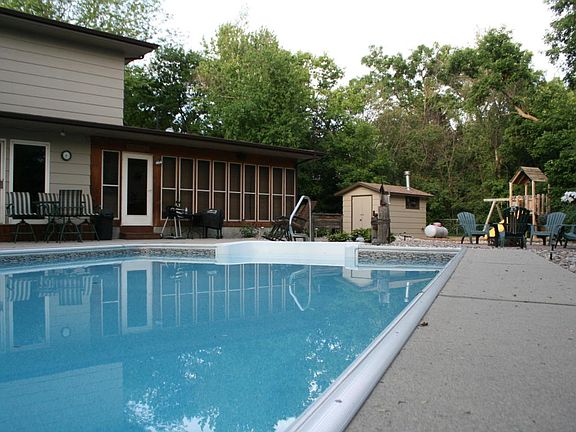 Enjoy the private pool area! 3 season room. Spacious home with an expansive master suite featuring two walk in closets. large 3 stall garage with a shop/kennel.