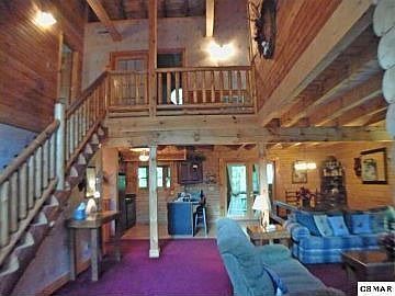 What a steal...sleeps 16, well maintained, not a foreclosure, but at foreclosure prices! Look at the pictures and see the quality of the log home. Handicapped accessible on main level with a ramp that has a gentle slope. 1 bedroom on main and bathroom on main is very large and accommodates a wheelchair. 3 bedrooms up with 2 full bathrooms, one with a romantic whirlpool and fireplace. Sit in front of a real fireplace with real stone and wooden mantle. Lots of decking and a screened porch to enjoy the mountain setting. Much of the furniture was handmade and painted especially for this home. Lower level has tons of sleeping space. Come and sell! Brokered And Advertised By: REALTY PLUS Listing Agent: BETTINA KOOIJMAN