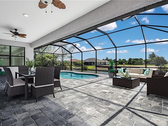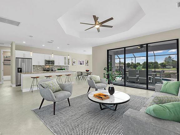 NEW CONSTRUCTION - waterfront home with pool & Gulf Access! Quality construction with concrete block structure, stucco exterior, and shingle roof. This 4 bedroom, 2.5 bath home with an open concept living floor plan is loaded with upgrades - volume & tray ceilings, tile flooring throughout, recessed lighting, granite countertops, dual entry barrier free shower & claw foot tub in master bath, large closets, and more! The fourth bedroom is located just off of the foyer and is ideal for a home office/den, and another guest room has private entry to a half bath that is also the pool bath. You will love the outdoor living space of the extended screened pool and lanai overlooking the canal... Perfect for entertaining and/or watching the gorgeous SWFL sunsets. Situated in a non-gated, no HOA SW Cape Coral neighborhood and surrounded by all of the conveniences of life- shopping, dining, sports fields, schools, plus just a short drive to the Midpoint Bridge heading into Fort Myers.