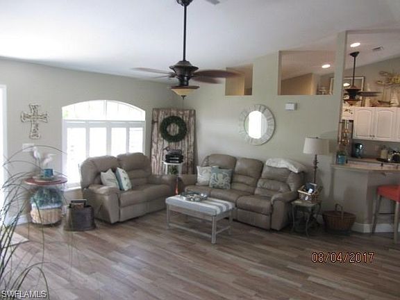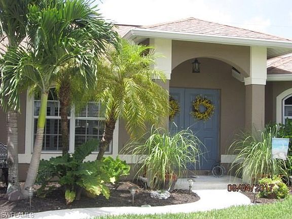 Beautiful Home!!! 3 bedrooms 2 bath pool home in the desirable SW Cape Coral neighborhood located close to schools, parks, shops and restaurants. You enter through double doors into the great room style with cathedral ceiling. The kitchen has new stainless Steel whirlpool appliances bought in January of 2017. solid surface counter tops with lots of cabinetry and a large corner pantry for storage. The property has new tile throughout, New paint inside and out, new pool pump 2017. The lanai is perfect for entertaining guests with three exits to the screen lanai and pool area. The Private Master suite features his & her walk-in closets and en suite bathroom with dual sinks, tiled shower and jetted soaking tub for relaxing. The yard has auto sprinkler system and updated landscaping and fenced in backyard. Great location and close to Veteran's pkwy, stores and restaurants!! You won't be disappointed!