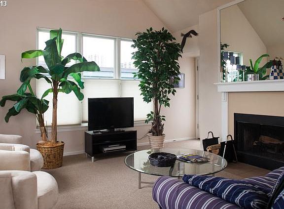 The perfect Riverplace home. Stunning top floor unit with views of Willamette River and Mt Hood, vaulted ceilings, skylights, wood fireplace, and deck. Unit features new carpet, fresh paint, deeded parking and an individual storage space. All appliances included. Lightly used as second home.