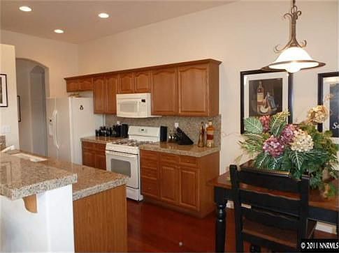 Enjoy all that master planned Double Diamond in South Reno has to offer with this lovely detached home. Quiet street, private beautifully xeriscaped yard, granite counters, hardwood floors, trex deck, stained concrete patio, central refrig a/c and a cozy tile surround gas log fireplace. Great open floor plan with high ceilings, ceiling fans and neutral colors complete this move-in ready home near parks, biking paths and shopping. See this one today!
