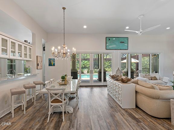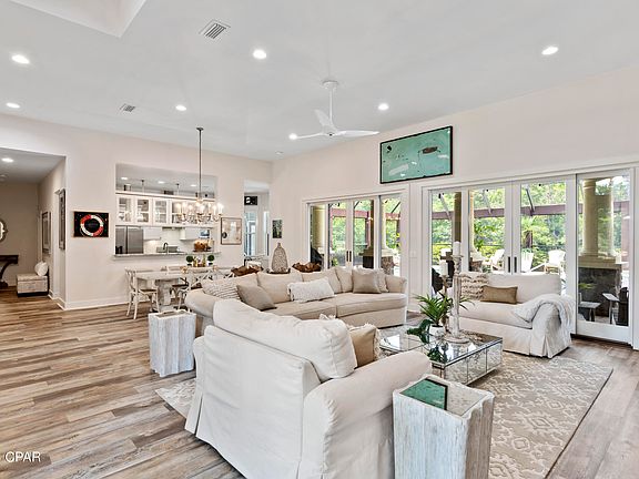 Welcome to Wild Heron, a peaceful coastal sanctuary nestled on the shores of beautiful Lake Powell. If you are searching for a home with quality construction in a quiet and peaceful setting, this property is a must see! Perfectly positioned on a spacious wooded .63 acre lot, this lovely Craftsman style home features a large screened heated pool and spa surrounded by lush potted plants and beautiful outdoor furnishings, 3-car garage, and professionally landscaped yard. The interior layout is perfect for entertaining as the large living area opens up to the screened pool. The one story floor plan includes three bedrooms, three and a half baths, office/study, spacious living/dining space with stunning stone gas fireplace, gourmet kitchen with island and breakfast area, and laundry. A spacious master suite is positioned in the home for privacy and boasts a large bedroom & sitting area with lake views, walk-in closet & built-in dressing area with vanity, and beautiful glamour bath with double vanity, freestanding garden tub, and large walk-in shower. The guest rooms are located on the opposite side of the home and feature updated ensuite baths and walk-in closets.((The current owners have made numerous additions and updates to the home including designer light fixtures & fans, new tankless water heater, new Marvin front door & living room slider wall with shades, new Samsung fridge, new gas range with air fryer, new hurricane rated garage doors, app controlled thermostats/door locks/irrigation/pool systems/Sonos sound system/lighting/security & Nest cameras, new Pentair pool system & tile, new flooring throughout, and much more! Complete list in MLS documents. Home is offered fully furnished with a few exclusions.((Wild Heron is located on Lake Powell with a 24 hour guarded entrance gate. Residents enjoy privacy and serenity yet are just a few minutes drive to shopping, restaurants, and the beautiful beaches of the Emerald Coast. Amenities include lakeview community pool, health fitness center, community dock for kayaking & paddle boarding, lakeside boardwalk, nature trails, numerous parks, and more. Wild Heron is home to the Greg Norman designed Shark's Tooth golf course and clubhouse which is part of the popular WaterSound Club that includes the WaterSound Beach Club and Camp Creek which boasts a golf course, tennis, pickle ball, pools, restaurants, inn, fitness center, and more. Initiation fee and monthly fees required for membership to the Watersound Club.