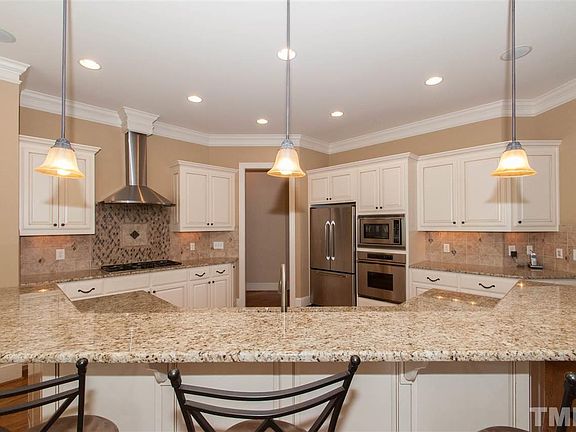 Beautiful, well maintained home has full bsmt w/stacked stone gas log FP, rec area, wet bar, bdrm & full bath. Gorgeous hdwd flrs on main level, 1st flr guest rm w/full bath. Lrg liv rm has wall of built-in shelving & bay window. Elegant dining rm w/wainscot molding. Huge gourmet kit offers granite counters, SS appl's, decorative inlay tile & breakfast area w/access to rear porch. 2nd FP in fam rm, fab MB w/luxurious whirlpool bath, his/hers vanities & WIC. Walk-up attic for future expansion, lower patio