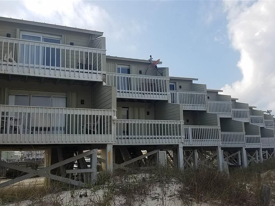 Right on the Gulf. You can't get any better than this old timey townhome complex. Walk out your door to the beach. This 2 bedroom 2 bath unit needs some TLC. Living dining combo downstairs, with east facing balcony. Upstairs are the 2 bedrooms both with balconies and good views. Owners had started updating so upstairs is not complete. Needs some carpet or other flooring, vanity installed and decorating. It has tile on the main level and carpet up stairs and in bedrooms. Landing flooring not completed. Great complex and HOA. Boardwalk to the beach, outdoor pool. Off the beaten path for a real away from the crowd feel.