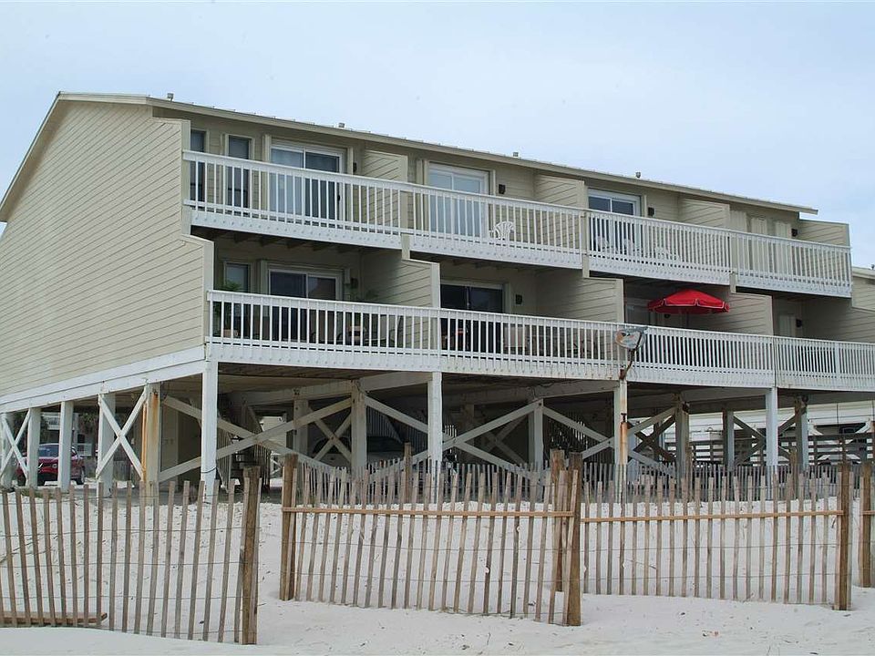 This Gulf Front unit is a nicely decorated 3 bedroom, 2 bath townhome that sleeps 9. Great rental unit. It features a large open living room, dinning room and a fully equipped kitchen. Walk out of your front door to the beach. Close to the Marina, Restaurants, and the Ferry. Beautiful sunsets from this West end unit. Complex has nice pool.