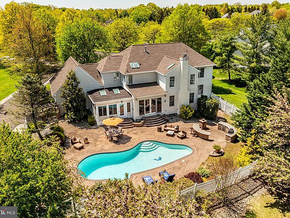 Welcome to this exceptional home in the prestigious and private community of Gatefield in Washington Crossing, PA! This residence on 1.11 acres offers a highly desirable layout that seamlessly blends elegance, functionality and fun.   The main level features a two-story Grand Staircase foyer that sets the tone for the home’s sophistication. A formal living room and spacious family room with cozy stone fireplace.  Massive open gourmet kitchen designed for entertaining with granite countertops, double oven, under counter microwave, gas cooktop and pantry.  Open layout flows into the living room with large windows to the front and 12’ all glass walk out to the expansive 1,475 sq. ft private stone brick paver patio & in ground pool. The outdoor kitchen and bar are perfect for pool parties with custom gunite pool and large sit up bar/grill.  If the weather is overcast or you want time out of the sun, just off the kitchen/pool is a beautiful, heated sunroom with surrounding windows and sky lights. Completing this level is a custom-built home office, a spacious mudroom/laundry room, Half Bath, back set of stairs leading upstairs and an attached 3-car garage.  Upstairs, the luxurious primary suite serves as a serene retreat with an en-suite bathroom, generously sized his and her walk-in closets with built-ins, and an inviting ambiance of natural light. Three additional well-appointed bedrooms provide plenty of space and versatility along with a jack and jill bathroom and another guest bathroom with walk in shower.   The lower level is fully finished adding another 1,777 sq feet +515 sq ft unfurnished bringing total living space to 6,527 sq. ft.  Basement includes a work-out room/office, media area, game area as well as an amazing wine cellar with seating and walk-up bar.  The unfinished area offers ample storage as well as an egress window and natural light.  Situated in a prime location, this home is nestled between Yardley Borough, Newtown Boro, historic Washington Crossing and New Hope, offering small-town charm and rich history. Its proximity to New Jersey, major highways, and train stations ensures convenient access to both New York City and Philadelphia. This property is truly a rare find in sought after neighborhood—don’t miss the opportunity to make it yours!  Two New AC Units in 2022, New Roof & Skylights in 2020, New Hot Water heater in 2020 & two new high efficient gas furnaces in 2015.  Public Water and Public Sewer, Fiber Internet and underground power lines.  Come See for yourself.  Schedule a private showing today!  Call John.