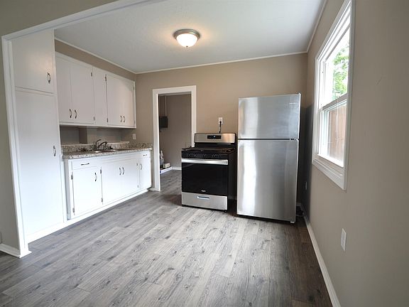 Cute as a button! Nicely updated with new flooring and paint throughout, new windows, updated kitchen with new appliances and updated bathroom with walk in shower. This easy maintenance home would be a great 1st home or rental property. Nice size living room that opens to the kitchen area with painted cabinets and new countertops and nice stainless appliances. There is a laundry room and space for a small table that could be a breakfast area off the kitchen leading out to the private fenced backyard. The gravel drive offers convenient off street parking space and a storage shed in the backyard provides shelter for the mower and additional lawn tools. This home is ready for the new buyer to move in and enjoy!