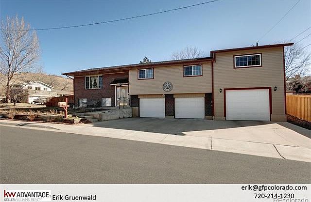 Stunning home in Golden! Amazing updated kitchen comes with granite counters, pull out drawers, and plenty of storage space. This home has 5 bedrooms and 3 bathrooms. The large master bedroom comes with its own bathroom and walk in closet. There are 4 bedrooms on the upper floor and 1 non-conforming bedroom on the lower floor. There are many updates throughout the home including newer carpet, windows, and paint. The home has a 200 amp service, high R-Value ceiling, and a sound system installed. This corner lot comes with a 3 car garage, on the the garages is 8 ft tall! In the large yard, you will find 2 RV parking spots, a large patio, and 2 sheds. The front yard has lots of curb appeal and has been well maintained. If you love the outdoors, this home is a dream come true! There are beautiful mountain views and the home sits only 1/4 of a mile from an open space trail head for hiking, biking and nature. Downtown Golden is only 2 miles away. Don't miss out, schedule a showing!