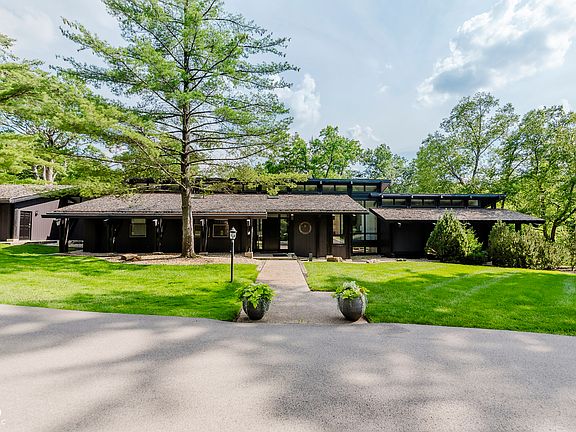 A peaceful and private estate located in Carmel sitting on 10+ acres with rolling hills, creek and mature trees. The moment you are driving up the driveway you know you are entering the ultimate gift: Privacy! Cedar exterior with several decks overlooking the luscious yard and tennis court. Architectural details with beams, arched and soaring ceiling, built-ins and plenty of storage. Kitchen with island, stainless steel appliances which include separate ice machine. Large master suite with impressive master closet. Lower level with wet bar 2 large rooms for entertaining and expansive deck that overlooks mother nature. The separate guest house would make a great mother-in-law home. This home can be enjoyed for all the seasons in Indiana. Home and additional cabin being used for home schooling at this time.