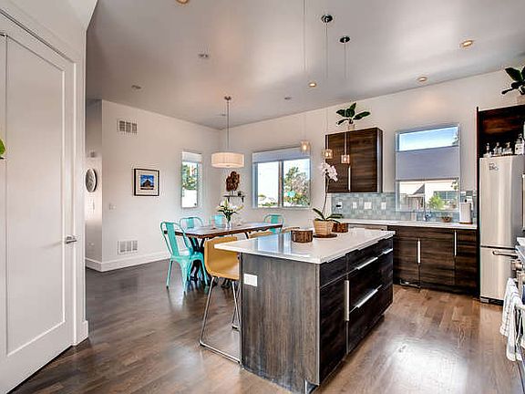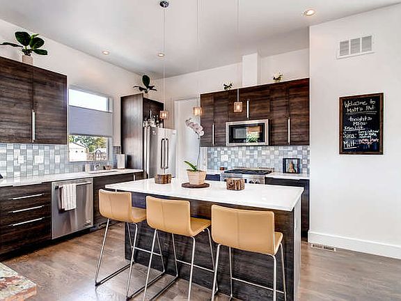 Amazing modern half duplex in super hot Sunnyside. Great access to LoDo, LoHi, Highlands, I25, I70, Light Rail, parks, restaurants, coffee shops! Model home with high end finishes, white oak floors throughout, Jenn Air professional series stainless appliances, quartz counter tops, wired for surround sound in living room, kitchen/dining, master bedroom and rooftop deck (amazing downtown and mountain views)! 2 HVAC systems for perfect climate control. Large master with large en suite bath and spacious walk in closet. Washer/dryer directly next to Master. Low maintenance zero-scape yard with raised planter beds that are fully irrigated. Over sized 2 car garage. Loft works great as office or sun room with access to 2 rooftop decks! Furniture is available for purchase. Can be purchased fully furnished