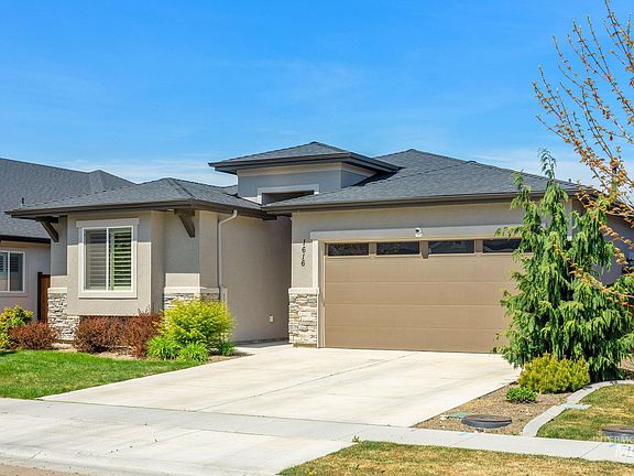 Situated in the highly desirable Summit Ridge Community, this beautifully crafted single-story home offers an open floor plan with vaulted ceilings and an abundance of natural light. Custom finishes add a touch of elegance throughout, including a gourmet kitchen with a spacious island and double ovens. All bedrooms feature classic shutters, while the bathrooms are enhanced with granite countertops and quality fixtures. The luxurious primary suite boasts a relaxing soaker tub and dual shower heads for a spa-like experience. Additional features include a central vacuum system for convenience, an epoxy-coated garage for durability, and a serene back patio with beautiful views of the valley.