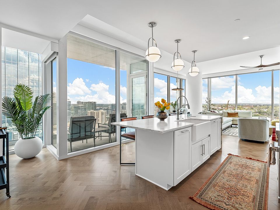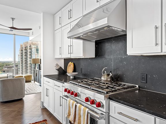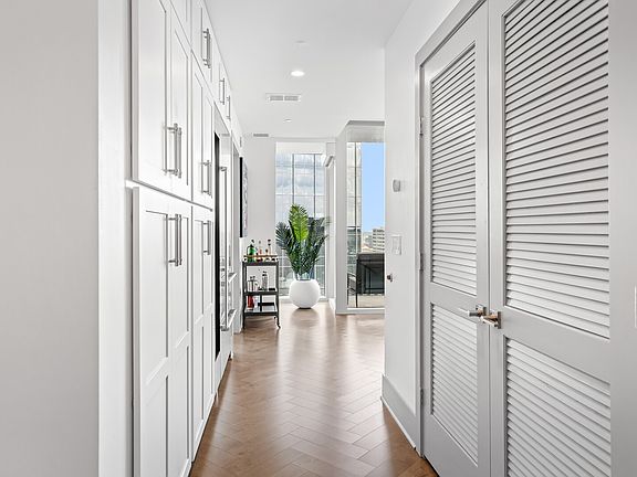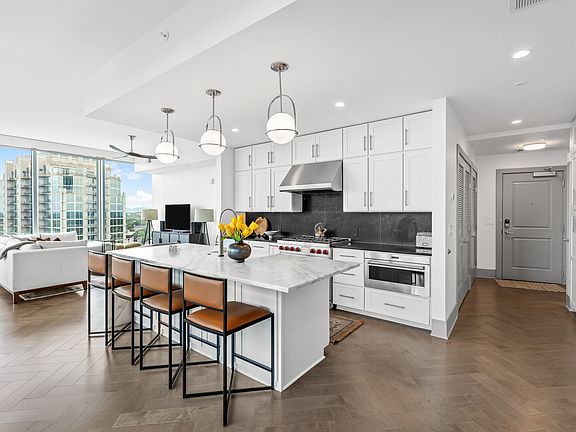 Gorgeous corner 2-bed, 2.5 bath residence at Broadwest; where Midtown meets Downtown! Positioned on the SE corner, it offers a large balcony, sunrise views, a spacious living & dining area, and an impressive array of features including a 42" Subzero fridge, 18" Subzero wine tower, and 6-burner dual-fuel Wolf gas range. Both bedrooms are en-suite w/double vanities & boast large walk-in closets w/very functional and attractive closet systems to maximize space. Property will also convey w/motorized window treatments throughout, full-size/side-by-side Electrolux W/D, and 2 deeded parking spaces in private, access controlled garage. Building is pet friendly, has 24/7 staff, & owners have full access to the incredible 34th amenity floor & array of Conrad Nashville Hotel services.