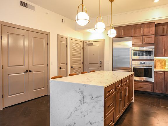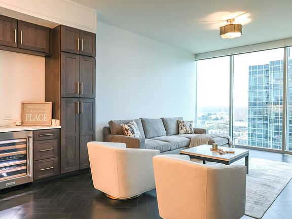 Indulge in urban luxury at The Residences At Broadwest, Nashville's premier highrise community! This 1 Bed/1 Bath + balcony unit offers a seamless blend of elegance and convenience, featuring 2 secure parking spaces. The chef's kitchen boasts a Wolf gas cooktop, SubZero fridge, marble counters/backsplash, waterfall island, wet bar, and wine fridge. The open floor plan and expansive floor-to-ceiling windows enhance the downtown living experience, making it perfect for entertaining. The master suite impresses with a marble-adorned en-suite, walk-in shower, and closet. Enjoy a wealth of amenities, including a fitness center, steam and sauna, golf simulator, billiards room, library, rooftop pool and grill, and more. Residents can access hotel services by Conrad and benefit from the community's proximity to Nashville's top restaurants and venues. Elevate your lifestyle in this chic urban retreat at The Residences At Broadwest!