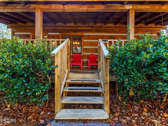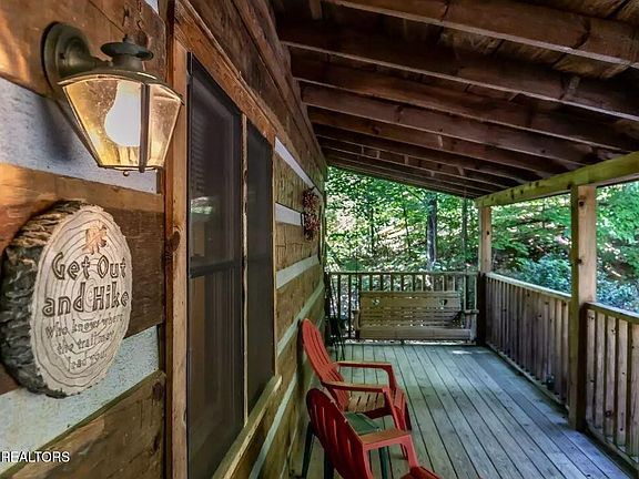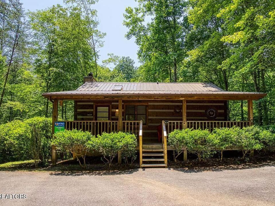This beautifully updated cabin offers the perfect combination of modern comfort and natural serenity, featuring a brand-new water heater, roof, water purification system, and new decor. Whether you're looking for a tranquil getaway or an income-producing property, this charming retreat has it all. Located just 7.5 miles (about 20 minutes) from Dollywood and 10 minutes from Pigeon Forge, the cabin is surrounded by peaceful wooded views, offering both privacy and convenience. The home features a new Amana HVAC system, a brand-new electric glass top stove, a new range hood exhaust fan, microwave, stackable washer and dryer, new small appliances in the kitchen, a large-screen TV, and hardwood floors throughout. The cozy living room boasts a wood-burning stone fireplace that's perfect for relaxing, and a brand-new sleeper sofa for additional comfort. The spacious king bedroom offers a comfortable space with views of the fireplace. The kitchen is brightened by a skylight, providing natural sunlight during the day and moonlight for late-night snacks. The dining table comfortably seats four, ideal for meals, games, or puzzles. Step outside to the private, enclosed rear screened porch where you'll find a hot tub—ideal for relaxation after a day of exploring. Enjoy peaceful moments swinging on the front porch while soaking in the surrounding nature. Additionally, the property offers an optional membership to Honeysuckle Meadows, complete with a stunning pool surrounded by mountains, a stocked pond for fishing, and a deli known for its excellent food.