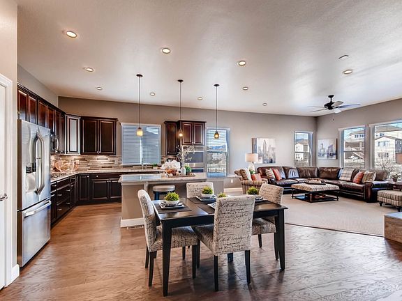 Better than new! Stunning Ranch home w/Craftsman-style curb appeal in West Arvada's Leyden Ranch. Just a few years old it shows just as a model home does. Wide plank flooring, wide hallways, upgraded lighting, new paint & contemporary carpet. When entering, your eye is drawn directly to the back patio and green belt views.The front half of the home boasts a main floor study, 2 bedrooms & 2 full baths. Upgraded cabinets, granite counters & tile in both baths. A separate cozy dining room is perfect for lg family dinners or entertaining neighbors. The back of the house is laid out to feast on the views of rolling hills, open space & sunsets. A large kitchen w/dark cabinets, light granite counters, SS appliances, 5 burner gas range & double ovens make this a true chef's kitchen. Family room w/fireplace & lots of windows adjoins the kitchen. The master suite has a bathroom that is as lg as the bedroom. Great location w/easy access. This home has it all!! Solar panels added 2018. Basement built out in 2019 with 16X12 bedroom plus en suite bath; large family room and storage galore.