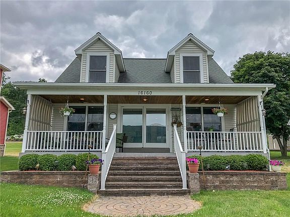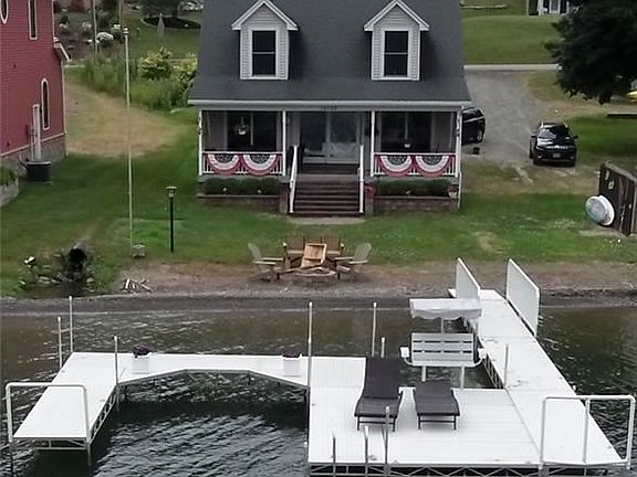Welcome to Keuka Lake!!! Year round living in this home. Drive right into the attached two car garage and enter the home. You will see the open floor plan and immediately have full view of the lake . On the first floor there is a full bathroom, laundry room, bedroom with a walk in closet and the dining, living and kitchen. Walk through the sliding doors to a covered porch area that over looks this beautiful lake. Upstairs there is a den perfect for office space, a bedroom with lake views, full bathroom , huge bedroom that can sleep many. Just through a door of this room is another sleeping area with stairs leading to the garage. One floor living can be done here. Easy access as there are no steps leading to the lake and easy access unloading your groceries.