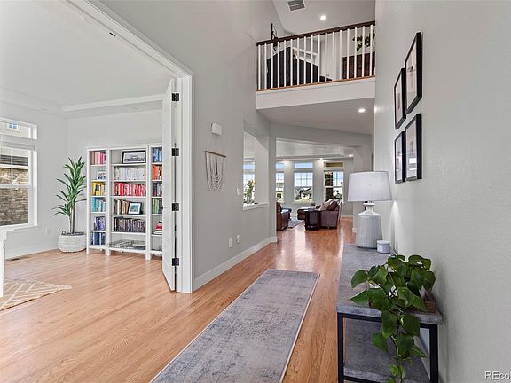 Welcome to the epitome of luxury living nestled within the prestigious, gated, Back-Nine Community in Reunion. This stunning two-story home backs up to the 18-hole Championship Buffalo Run Golf Course, offering unparalleled views of the fairways & the mountains from your backyard. As soon as you step inside this meticulously crafted residence you will be captivated by its expansive open floor plan that is flooded with natural light & views from every window! The main level boasts spacious living areas designed for both relaxation & entertainment. The gourmet kitchen is a chef's dream, equipped with two refrigerators, two gas ovens, custom cabinetry, walk-in pantry, & large island. Beautiful hardwood floors through the main level lead to the expansive living room with gas fireplace & the large study. Escape to the luxurious primary suite located upstairs featuring a second gas fireplace, amazing views, spa-like ensuite bathroom with soaking tub, dual vanities & large shower. The primary suite also includes a giant walk-in closet with plenty of room for multiple wardrobes & accessories. The upper level also holds 3 more additional bedrooms each with walk-in closets & one with an en-suite bath. Not to be outdone is the full, finished, walkout basement! It features a large great room, bar, a 5th bathroom & 5th bedroom with another large walk-in closet. The home also has dual AC & furnaces as well as a whole house water filtration system. Outside, relax on the upper level deck or on one of the lower level patios that looks out onto the 16th fairway. Gather around the firepit on cool evenings & enjoy the outdoor kitchen with pizza oven & grill! This home also offers access to the exclusive amenities of the Reunion community including parks, trails, recreation center, pool, local coffee house & so much more. With its unbeatable location, luxurious features, and unparalleled views, this is an opportunity to experience the ultimate in Colorado living.