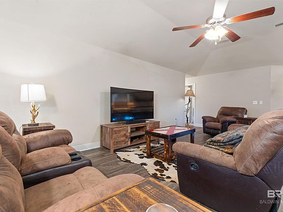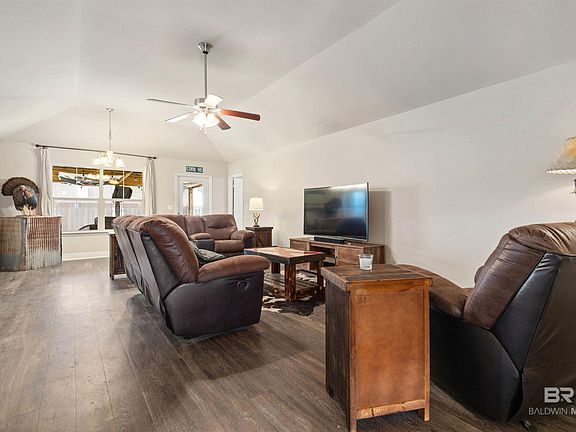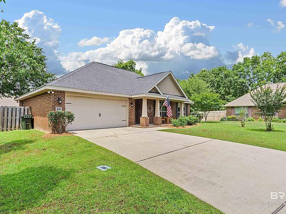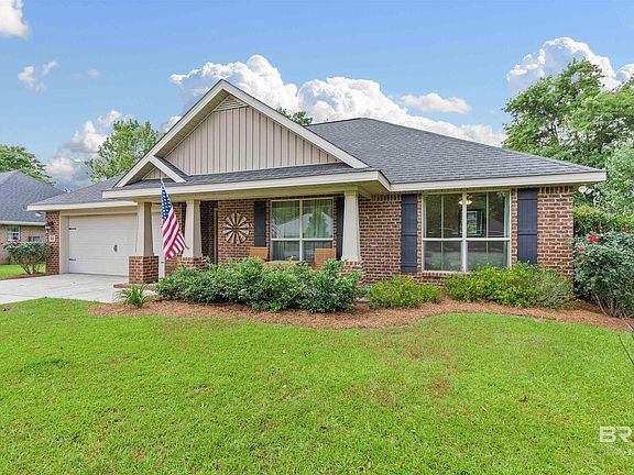 You will love this 3 bedroom, 2 bath all-brick craftsman, located at the end of a cul-de-sac, in the Lakeland community of Loxley. Built in 2016, this home features the much-loved open concept floor plan, separating the kitchen and great room with a nice breakfast bar. Neutral LVP flooring seamlessly flows throughout all the main living areas, including the primary bedroom. This split floor plan home includes a large primary suite, with a trey ceiling, a nice walk in closet and a double vanity in the bathroom. Enhancing the property is the spacious fenced in backyard, that surrounds the new wood deck and covered patio. Lakeland Subdivision is an enchanting neighborhood with a private lake, community pool and clubhouse, along with a large deck and boat launch that takes you onto tranquil Lake Raynagua. This property is conveniently located only 7 minutes south of I-10, giving you easy access to Mobile or Pensacola and only 30 minutes to the beautiful white sandy beaches on the Gulf of Mexico.