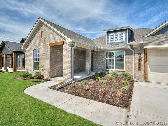 *Price reduced by more than $34,000!* The great room in this open-concept layout is exceptional. With its 13-foot cathedral ceiling and beautiful wooden beam stretching across the living room, it exudes grandeur. Enhanced by pristine wood flooring and an exquisite fireplace, this space captivates. This floor plan also features generously-sized bedrooms, a spacious laundry room, a practical mudroom, and a covered patio. And that's just the beginning. The kitchen will amaze the family's chef with luxurious quartz countertops and top-of-the-line built-in appliances, including a gas range. The kitchen island stands out with custom wood paneling, adding elegance. The primary suite resembles a spa, boasting a freestanding tub with a stunning tile surround and a sizeable walk-in closet. The study, conveniently accessible from both the kitchen and the foyer, epitomizes convenience. Externally, the house exudes traditional charm, with a sizable garden bed waiting for creative landscaping. This open-concept layout showcases a stunning great room with a 13-foot cathedral ceiling, wooden beams, and a captivating fireplace. Generously-sized bedrooms, a luxurious kitchen, a spa-like primary suite, and a convenient study complete this exceptional home. Traditional charm and a garden bed add to its appeal. New homes in this sought-after suburb of Tulsa offer homeowners the perfect balance of city life and community comfort. With amenities like parks and splash pads, Bixby Village is the perfect place to find your dream home. Located across the street from the highly regarded Bixby Central Intermediate School and High School, the location could not be better for raising a family. Included features: * One-year home warranty * 10-year structural warranty * Guaranteed heating and cooling usage on most Ideal homes * Fully landscaped front & backyard * Fully fenced backyard. Floorplan may differ slightly from the completed home.