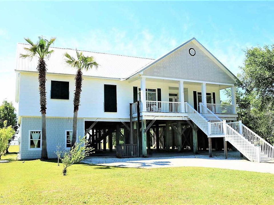 The perfect Waterfront Home!! Over 3800 sqft of Sunshine and Sunsets with breathtaking views of Bon Secour Bay and Mobile Bay. Huge lot- 3.99 acres! 6 bedrooms/5 baths-- You'll feel your blood pressure fall as you breathe the fresh air! This AMAZING Coastal home has tons of unique features: Honduran Teak Hardwood floors Open floorplan Two screened porches and huge deck overlooking the water Emergency Generac propane whole home generator Exterior water propelled lift (great for groceries!) Sunsetter awnings 2 AC units (1 up and 1 down) Private pier and multilevel boat dock Large Master en suite with 2 walk-in closets XL laundry with wash sink and linen closet Metal roof new in 2005 Private outdoor shower Attic storage Crown molding XL workshop Built-ins and wood burning fireplace in the living area Giant pantry flagpole BEST VALUE ON THE WATER at $190 per sqft!