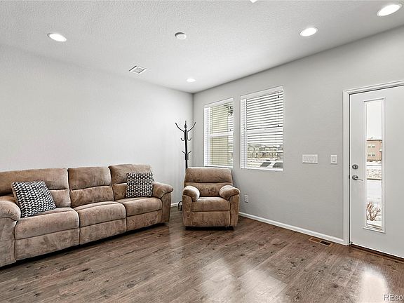 This beautifully maintained 3 Bedroom, 3 Bath townhome boasts an open-concept design with a light and bright living room, lovely kitchen, and expansive granite countertops. The kitchen features plenty of cabinet space, stainless steel appliances, and an adjacent dining area, as well as recessed lighting and beautiful LVP floors. Additional features include a half bathroom and entry to the attached 2-car garage on the main floor, as well as a Primary Bedroom with en-suite bathroom and large walk-in closet. Two spacious bedrooms and a full bathroom are located down the hall, along with upper-floor laundry complete with washer and dryer. The Community HUB offers a range of amenities, including a clubhouse, pool, business center, parks, and a dog park/wash. With easy freeway access and convenient proximity to shopping centers, dining, DIA, downtown, and public transit, this home offers an ideal combination of luxury and convenience. Schedule your showing today!