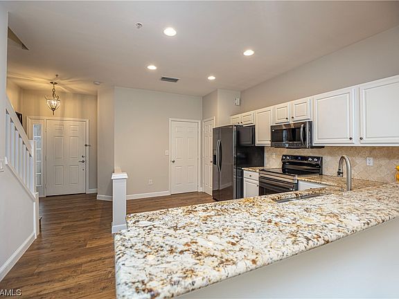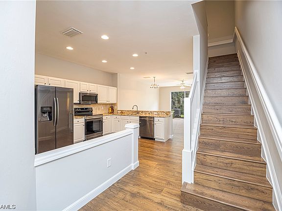 LOCATION, LOCATION, LOCATION! This home is ideally located at the end of a quiet Cul-De-Sac in the Milano community, within the highly desirable 34110 zip code and just minutes away from the A+ rated school district of Veterans Memorial Elementary, North Naples Middle and the brand-new Aubrey Rogers High Schools. The spacious 3-bedroom, 2.5-bathroom, 1 car garage townhouse features open concept living room - dining room space on the first floor and master bedroom suite and 2 bedrooms sharing a bathroom on the second floor, offering lots of room and privacy to spend time with family and friends. The kitchen boasts updated stainless steel appliances and granite countertops.