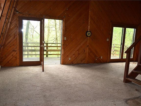 EXCEPTIONAL HOME ON 1.73 ACRES SITED FAR BACK FROM THE MAIN ROAD. THE A-FRAME STYLE OFFERS 3 BEDROOMS IN THE MAIN FLOOR ADDITION AND THE MASTER SUITE IN THE LOFT ABOVE THE LIVING AREA. THE OPEN FLOORPLAN BRINGS THE KITCHEN AND THE LIVING AREA TOGETHER MAKING THE AREA APPEAR MUCH LARGER. OFF THE LIVING ROOM IS A LARGE DECK OVERLOOKING THE VALLEY BELOW. A SMALL POOL IS OFFERED DOWN A SHORT FLIGHT OF STAIRS AND ACCESSIBLE FROM THE LOWER LEVEL FAMILY ROOM. THIS HOME IS A VACATION HOME AT HOME!!