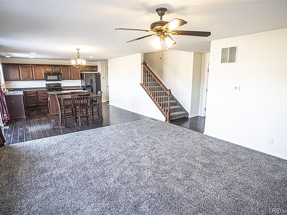 Welcome to this move in ready home with mountain views! This 3 bed 2.5 bath, 2 car garage home backs to open space. Fresh paint and new carpet greet you as you enter the home. The Kitchen has ample storage, a spacious pantry and large island. The open floor plan makes it easy to host guests with the kitchen and dining room opening into the living room. Sliding glass doors exit to the back yard and patio. Electric is ready for a hot tub to enjoy the mountain views and evening sunsets!!! The 2nd floor has 3 beds and 2 baths. A large master bedroom has an attached master bath with double sinks and a walk in closet. Laundry is conveniently located on the 2nd floor. The basement is ready for your imagination and plumed for a bathroom. This is a must see!!