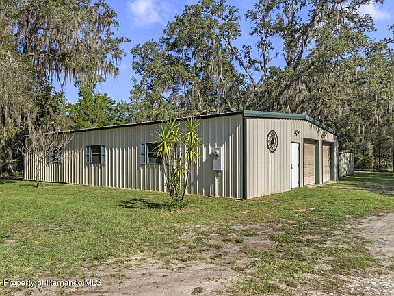 2/2 HOME + 2,400 SQ. FT. METAL WAREHOUSE ON NEARLY 1 ACRE - NO HOA! Unique opportunity on .92 acres, fully fenced with an automatic gate, zoned AR2 and no HOA. This property features a 2,400 sq. ft. (40 x 60) metal warehouse with three garage doors, concrete floor, its own electric meter, and a 220 plug—well-suited for storage, workshops, or creative ventures. The 2-bedroom, 2-bath mobile home offers a split floor plan and can be updated for owner use or leased for steady cash flow. Plenty of space for RVs, boats, or equipment. Located minutes from the Suncoast Parkway and all the restaurants, shops, and services along SR 50.