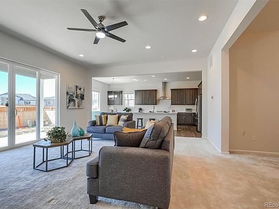 This stunning home built in 2022 in the gated portion of Buffalo Run golf course community, The Gallery at Reunion is an absolute must-see. It features a home inside a home with a much sought after In-law-floor plan. One wing of the main floor is separate, and includes a large bedroom, ¾ bath, laundry room, living room, kitchenette, private entrance and garage. This space is perfect for generational living or rental income. The great room has a massive sliding door which leads to the covered patio, providing that indoor/outdoor living experience, perfect for entertaining. The kitchen is showstopper featuring top-of-the-line appliances, wall to wall cabinetry, quartz countertops, a large center island, an eat-in kitchen nook and a storage pantry. Boasting 6 bedrooms, 6 bathrooms, and a finished basement - this home has everything you could ever need with over 4700 sf of finished living space. The home is energy efficient with low-e windows and dual furnace and AC units, making temperature control very easy and comfortable. The primary bedroom suite features an expansive sitting area, large walk-in closet and spa-like bathroom complete with soaker tub, massive shower and dual vanities. There are 3 additional bedrooms upstairs and 1 in the basement. They are spacious, and two of the secondary bedrooms have walk-in closets, which is an added bonus. The finished basement provides an additional living space with a beautiful wet bar, complete with a guest suite and private bath, making it perfect for guests or the ultimate man cave. With this breathtaking combination of beauty, elegance and functionality, this home is perfect for any family seeking the very best. The Sellers installed a fence and backyard landscaping taking those costly expenses off a Buyer’s plate. Come check out this beautiful home, so much more to discover!