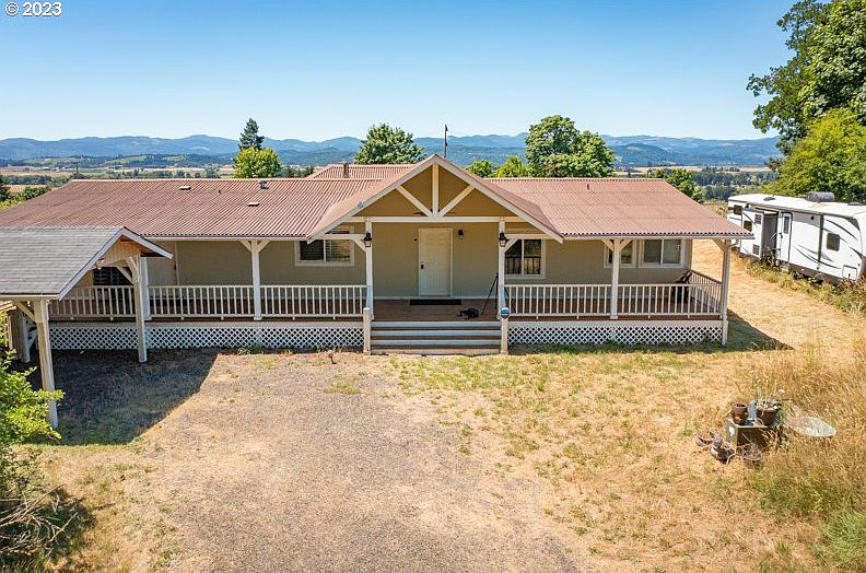 Spectacular views from Manufactured Home on top of hill. Great property with many potential uses for this 15.2 acres on a hill in the center of Yamhill's wine country. MH is on community water and a separate septic system. Large covered deck off dining room for entertaining and enjoying evening sunsets with great valley views! Carport for covered parking and some storage. Property has fenced sections, a chicken coop area, and a covered picnic and play area. New enhanced septic near barn rated for 5-6 bathrooms. Remodeled Office area and 2 restrooms in front of barn. Property sold As-Is. All information must be independently verified by the buyer. Sellers Agent must accompany buyers and their agent on showings, please provide 24 hr. notice. How will you use this 15 acre jewel in the heart of Yamhill county? Small CSA farm? Something in the wine industry? Build your dream house on top where the MH is?