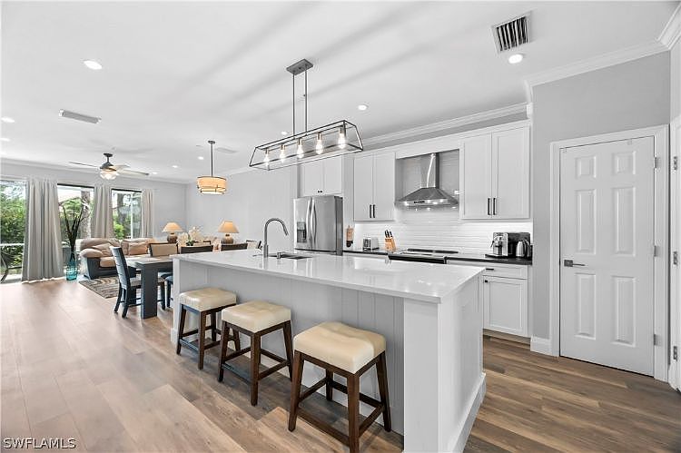 Your search is over! This home is available NOW for Immediate Occupancy and the recent major renovations have been completed! Furniture Package is also available for sale, so this could be the easiest move you make! Beautifully upgraded, this home offers an open Kitchen with huge work island featuring Quartz Counters, newer Cabinets, Gourmet Stainless Steel Appliance package with hood vent, ample sized pantry, and custom tile back splash. All 3 bathrooms have been upgraded with upgraded tile walls and flooring with decorative design features, quartz counters, newer cabinets, and glass shower doors. Neutral paint palette and gorgeous hardwood floors with wood stair treads throughout. The Community of Verona Pointe is close to all of the renowned Shopping, Dining, and Beaches that Naples has to offer! Low HOA fees - this community offers a nice community pool to soak up the Florida Sun.