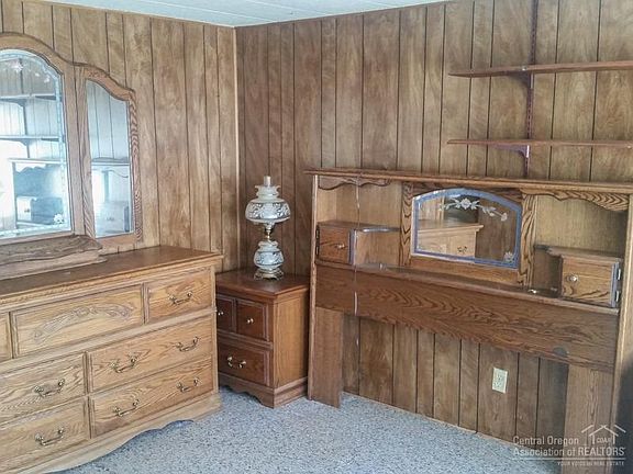 Great Opportunity to own a home on a 1.11 acre lot in Central Oregon. 1978 Marlette Mfg home features 2 bedrooms, 1 bath, kitchen, living room, covered back deck and nice sitting patio. Newer Septic and Well installed on the property. 576+/- sf RV Storage Pole Barn, 1200 +/- 3 car garage/shop, garden/wood shed. Property is fenced with a paved driveway and on a quiet road. Home is furnished.