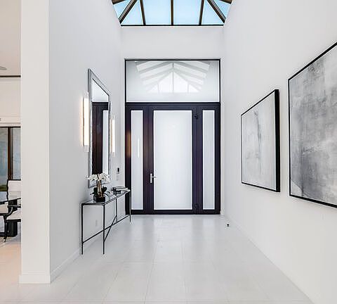 Sleek pool and spaCul de sac streetModern architectureCustom cabinetryPrivate resort-style backyardSingle-story architectural retreatBreathtaking panoramic views