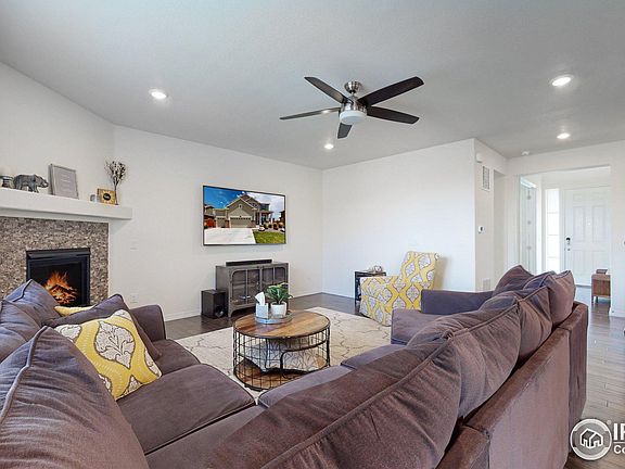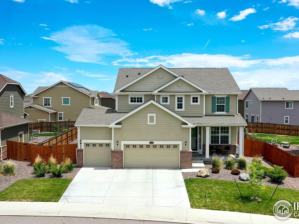 Stunning two story residence in the very sought after Orchard Farms community. Situated perfectly on a rare premium lot that fronts a gorgeous 5 acre community park. Enjoy mountain views & stunning Colorado sunsets from the covered front porch. Built in 2018, this better than new home is very open & inviting. Enjoy engineered hardwood flooring throughout the main level. Special features include: main floor study, mud/laundry room located off oversized 3 car garage, spacious family room w/gas logs & full bsmt to finish anyway you wish. The gourmet kitchen is the heart of this home w/sizeable island, granite, pantry, gas cooktop & stainless appliances. Retreat to the private backyard, fully fenced w/covered deck & lush landscape. *No neighbors looking in! The second story boasts 4 bedrooms & 3 baths which include, a grand owners suite and guest room w/full ensuite bathroom. Immaculate condition, nothing left to do but move in and enjoy. Outstanding location, minutes from I-25, E-470.