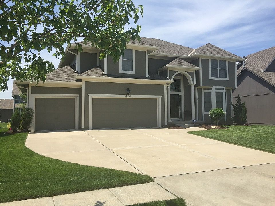 Large kitchen boasts beautiful granite counter tops, gorgeous hardwood floors, stainless appliances, under cabinet lighting and GE Profile microwave with convection oven. The kitchen opens nicely to the large family room and gas fireplace with heat exchange. Large formal dinning room is perfect for entertaining and family gatherings. Large master bathroom has double vanity, separate tile shower and large tub and two large walk-in closets. All carpet is less than 4 years old. And rest easy with newer furnace and hot water heater as well! Enjoy the professional landscaping from the comfort of your covered patio with power awning that provides the perfect shade! All of this in the award winning Olathe School District!
