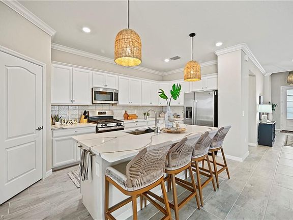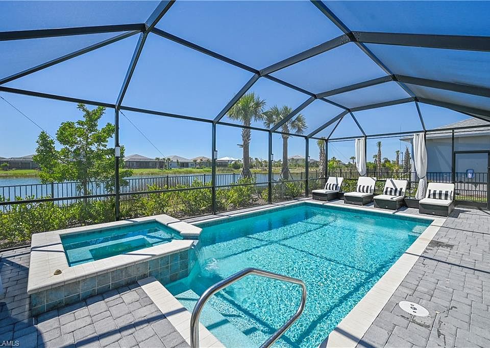 Stunning southern exposure single-family home with spectacular sunsets! This popular Sylvester floorplan is being offered turnkey 4 beds | 3 baths, just bring your suitcase. Upgrades throughout: modern quartz counter tops; beautiful decorative tile back splash; plank tile flooring throughout; fenced in backyard! Natural gas appliances: tankless gas water heater; gas range; and gas dryer. Enjoy the indoor outdoor living with a private pool and hot tub, or head less than a mile to the town community resort-style pools! Access anywhere in Babcock Ranch by golf cart. Enjoy true resort-style living with an abundance of fantastic amenities included. Love to walk, hike, or cycle? Babcock Ranch has multiple paths throughout to get fresh air and enjoy the nature that integrates with the town! Food trucks EVERY Friday and Saturday, with multiple events planned each month!