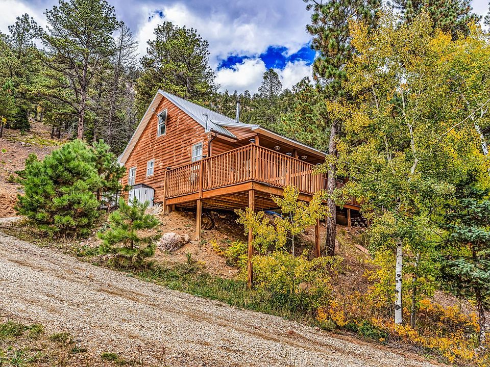 Mountain Chalet bordering BLM and National Forest. Nestled against BLM and National Forest land, this inviting mountain chalet offers both convenience and outdoor adventure, with access to lakes and over 100 miles of hiking trails. Enjoy breathtaking views, lush woodlands, and frequent wildlife sightings-including a resident herd of bighorn sheep. Inside, custom Beetle Kill Pine walls and vaulted ceilings bring warmth and character to the 3-bedroom, 2-bath layout. The attached 1-car tandem garage adds functionality, while the oversized 30' x 48' detached shop/garage provides abundant space for vehicles, tools, and projects. Conveniently located just off Hwy 96, the home is easily accessible year-round-even during heavy snow-thanks to well-maintained roads from both Westcliffe and Wetmore. The last two owners lived here full-time, commuting easily from Pueblo, Canon City, and Florence. Convienent, peaceful, and surrounded by nature, this property blends comfort with true Colorado mountain living.