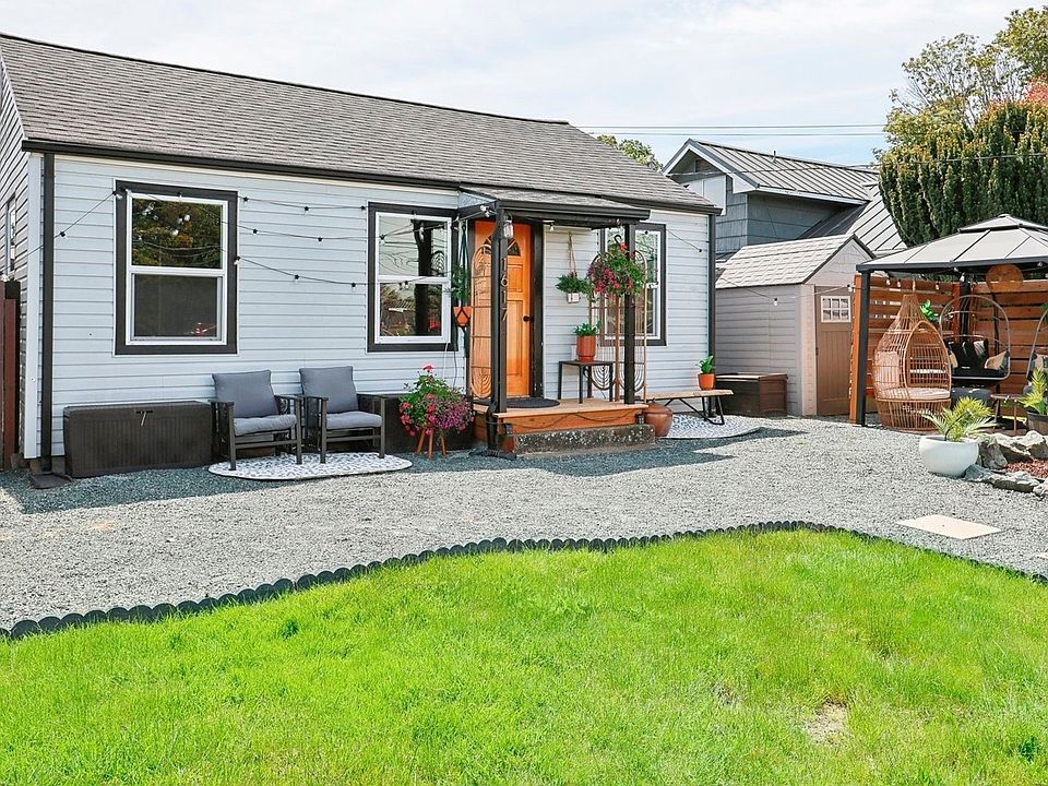 This charming home, originally built in 1920, has been beautifully remodeled, blending vintage charm w/modern amenities. Step inside to discover the warmth of the original fir floors, reminding you of the home's heritage. Main house features 3 bedrooms & 1 bathroom, offering comfortable living spaces that are both inviting & functional. Modern appliances & stylish finishes, this kitchen is sure to impress. Outside, you'll find a delightful surprise - a tiny house ADU in the BY. This studio-style ADU provides a versatile space that can be used as a guest suite or rental opportunity. Windows & roof were replaced during the full remodel 6 years ago. Don't miss the opportunity to own this unique blend of historic charm & modern convenience.