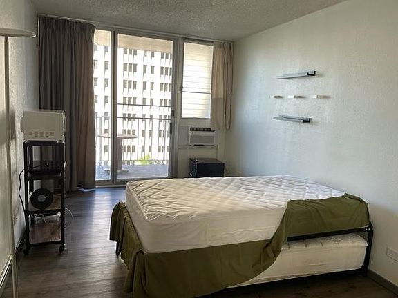 Ala Moana Tower is a secured building with Fob required to get into the building, and your designated Fob only goes to your floor. 60 square feet balcony is a great place to start your morning with a cup of coffee. There is a pool in the building for the hot summer days or swimming by the nearby beach at Ala Moana Park and Magic Island. It is just one block from Ala Moana, Target, Walmart, Sam's, Don Quijote, and Palama market. Fresh paint and luxury vinyl flooring, partially furnished with an AC, a mini-fridge, a microwave, a hot plate, and a twin bed with a twin trundle bed below adjustable to a regular bed height. Electricity, water, hot water, and internet are all included in the monthly rent of $1100 (including the 4.71% GE taxes). You really do not need a car, but parking is available for an additional $150 a month. One-month security deposit with a minimum of a 6-month lease. No smoking building. Water, hot water, electricity, and internet included.