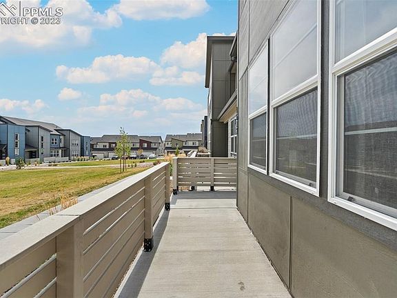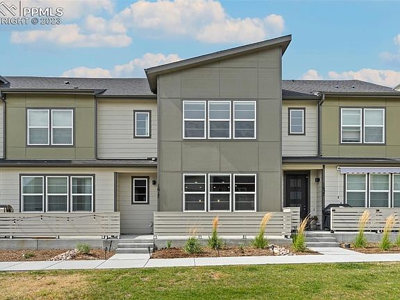 Come check out this less than a year old light and bright townhome with so many awesome community amenities! When you walk in you're greeted by tall ceilings, LVP flooring and a beautiful open concept main floor. Head up stairs and you'll pass right by the main level powder bathroom. Once you get upstairs you'll find not 1, but 2 Suites! The main owner suite has 2 walk in closets, a bathroom with a double vanity, shower and toilet. The secondary suite also has a huge walk in closet as well as a bathroom with a double vanity, shower and toilet. Both bedrooms are more than large enough to accommodate a king size bedroom set! Upstairs you'll also find the full size laundry room so laundry days are a breeze! Got dogs? No problem! Take a few steps out the front door and you're immediately in the community green space that is maintained by the HOA, No mower or yard tools needed. Speaking of green space, right around the corner there is a massive new community park being built as we speak! A few more property highlights include a large 2 car garage, a 240 volt outlet pre-wired for any of your electric vehicle needs, tankless hot water, AC, lots of storage closets throughout the home and of course, you're within walking distance to some of the newest dining, entertainment and shopping amenities in Colorado Springs!!