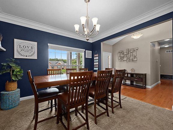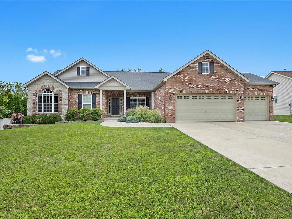 Welcome to this charming ranch home on a peaceful cul-de-sac in Maple Hill Estates! Just minutes from Downtown Belleville, Scott AFB, and Freeburg, the location is close to everything. Enter the home to a spacious foyer that leads to a dining room with crown molding and a living room with a vaulted ceiling and ample windows. The adjacent kitchen features a center island, pantry, stainless steel appliances, and granite countertops. Convenient main-level laundry and a three-car garage are nearby. The fenced and flat backyard boasts a patio and plenty of space for outdoor enjoyment. The main level offers three bedrooms, including a primary suite with a walk-in closet, as well as a luxurious bath with dual sinks, a soaking tub, and a separate shower. The finished lower level provides a family room, bedroom, gym, plumbing for a bath, and additional storage space. Located in the desirable Freeburg school district, this property is a must-see!