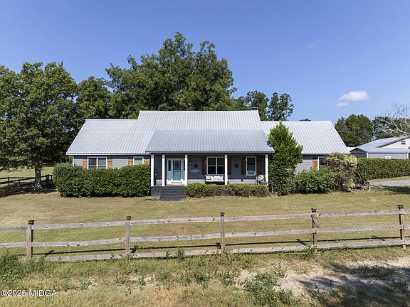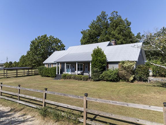 Welcome to country living at its finest! This Beautiful home sits perfectly nestled on the 4.97 parcel, showcasing a 6-stall horse barn on a separate electrical meter with water access, 50 ft in-ground pool with new liner installed 2024, 2 screened in patios, and tack room. This home features new LVP flooring throughout and fresh paint. The horse barn is 2story and can be converted for office space or for personal business space. The kitchen offers an open concept with a cozy fireplace that is perfect for family time or entertaining! This split floor plan offers privacy as well, with the master suite located downstairs. Located just 5 minutes from I-16 and15 minutes to Dublin. The seller is offering incentives with a qualifying offer. All pool equipment is staying with property. Call or text today for your private tour.