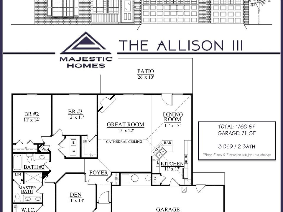 PENDING New Majestic home on large pond in Walnut Estates. This Allison III floor plan offers 1819 sq.ft. with huge impressive entry leading to large Great Room with corner gas fireplace, cathedral ceilings, and open to kitchen with flush bar and dining area. 3 bedrooms and 2 and a half baths. Den or office in front with French doors Master bedroom has cathedral ceiling, large walk in closet, tiled shower, and double bowl raised vanity. Kitchen offers lots of staggered cabinets with crown molding, over and under cabinet lighting, stainless steel appliances and bar top. Large eating area with Atrium door to large 26x10 concrete patio in back. 3 car garage with service door and laundry tub. Front yard has sprinkler system will be sodded and landscaped. Back and side yards will be graded and seeded.