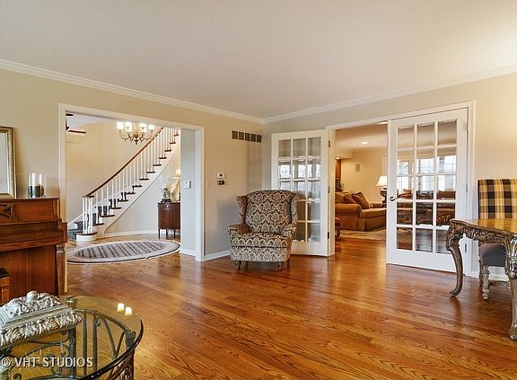 Hilltop brick center entrance Colonial in Inverness Hills. Beautiful 2 story bridal staircase greets your guests as they enter this well thought out floor plan. Notice the gleaming wood floors that grace the entire 1st floor. A large dining room flanks the entry on one side and the formal living room on the other. Open the leaded glass French doors to the family room with cozy stone fireplace & wet bar. This room is open to the large kitchen with plentiful cabinet space for storage. Screened porch has new Trex flooring & is perfect bonus room during the warmer seasons. The private 1st floor 5th bedroom is currently being used as a home office w/full bath adjacent. The master en-suite features a large walk in closet and brand new master bath complete w/over-sized shower, soaking tub and dual vanities. Basement rec room is finished w/wet bar, TV viewing area and game room and is perfect for casual entertaining. New architectural roof, new landscaping and updated front walkway.